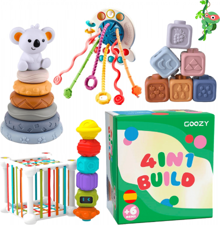 Os dejamos también este pack de juguetes de estimulación Montessori, ideal para bebés de 6 a 12 meses. Son de un material resistente y blando, ideales para que lo tiren mil veces al suelo.
